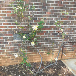 I have to say that my Appleblossom Flower Carpet is pretty much bullet proof. RARELY even gets any kind of diseases and blooms all summer long. It's pretty much self cleaning too as I hardly ever have to dead head it. Mine spreads out in a nice circle about 4 feet wide with an occasional cane that goes up to about 3 feet in height. But if you want to train it to go up that wall it's pretty flexible and should be easy to do.