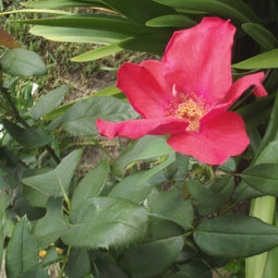 I have a Sir Edward Elgar that has done well for me. It gets about 5 to 5-1/2 ft tall, and it reblooms dependably. It is a dark pink color similar to the color of the HT Electron, if you know that one. It is a bright, electric pink. The picture below doesn't quite do it justice, but I think you can get the idea. I'm not sure why this rose doesn't appear more often in catalogues because it does reasonably well, at least here.