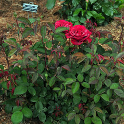 In my garden where everything that's supposed to be red or purple is pink, Ascot is a standout red. It's on the magenta side of the spectrum but the color stays true and doesn't lighten. The blooms have even held up pretty well to rain, and we've had plenty.