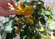 Here is Centennial Rose, still in her pot. She hasn't even been fertilized this year.