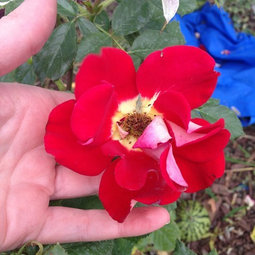 Also, I know next to nothing about pruning :$ I guess come fall I'll be reading up on how to prune those large pink roses. I prune off the flowers as they die so that it continues to bloom. Perhaps they are not well suited for growing in a container. I argued with my husband last year to get bigger pots, but he felt a pot slightly bigger than the one they came in would be fine. It was, but they definitely look like they are outgrowing it. The two pink roses look like they might be too close during winter, but it's pretty dry here in California. I figured being this close might help create a humid microclimate? Although humidity causes fungal problems, so I don't know >_