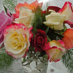 The all white roses is a great idea, one that has been stuck in my head now, thanks hoovb!! :-) I think a white rose with a "milky" tone to it might work well. I would think the "snow" white roses would look to bright white next to the more milky hydrangea blossoms.