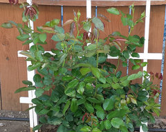 Yes, I would describe it as apple green. None of mine are terribly thick yet, but new growth is very flexible. Thanks for the advice regarding the water Kim. Michael I will grab a leaf or two in the morning and post them, thanks. Jackie that is encouraging. I shouldn't have to wait long. Roses do much better here in the winter, so when it cools down it may bloom in it's 5th year.
