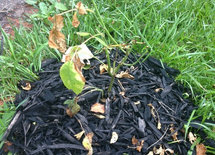 What I do is mound chickweed around the new growth. Chickweed has a high water content, continues (for a while) to live after it's been pulled up by the roots, won't add to any propensity to rot, can by grown through by new rose growth, is free (and most of us have it readily available at this time of the year.)