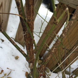 Boy - things move quickly when I haven't logged in for a day or two! You're right that most of these canes need to be pruned down. All three canes in picture #1 probably need to be taken down to mostly at the ground, though you might be able to stop just before the growth I see at the base. You want to see mostly green cane with mostly cream colored centers after you prune. In picture #2, you can see the growth dying off at the end of the two smaller canes and these need to be taken down to the ground. The center cane might have an inch or so of good cane left - you could try cutting just above a swelling I see toward the base of the cane and see if it will resprout. So far, it isn't showing many good signs of growth. The last picture has a little better cane on the back larger cane, but those brown streaks look like trouble in the making. I'd cut that front shorter cane all the way to the ground, and you'd need to at least trim the back cane down to where the growth starts to the right. In my garden, I'd trim further down to where the growth starts to the left, but some of those streaks might turn out OK. Usually it's a sign of something that gets worse, so if there's still healthy cane below it, I'm always prone to cut more so there's less danger of spreading.