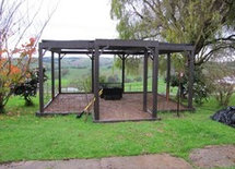 Thank you, Charleney, for your comments. Though there is more than one trunk (is "trunk" the proper term?), this trunk in the tallest and most rose-filled of my Golden Showers climbing rose. The slice out of the trunk is within a foot of ground level, so I hate to think it might need to be cut back. I must rely on you kind folks with more knowledge than I on caring for roses and will remain patience to see what happens.
