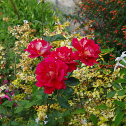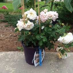 I love the joining hands!!! :-) In our last home I had all Earthkind roses in beds around the house that were already there when we moved in. I was pruning everything back in February. The spacing between the roses was irregular and I was grumbling about it. Two of the Sunny Knockouts were planted too close together and my granddaughter who was 3 at the time said "it's okay Grandma, they are hugging each other"