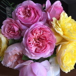 I picked another few blooms yesterday afternoon and turned the triple decker to a quadruple decker arrangement: