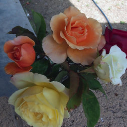 What a fun idea! If you don't like the idea of minifloras, there's always Kentucky Derby, a reasonably hardy red HT that I think Rogue Valley sells. There's also Elvis and Miss Elvis that I haven't tried that are Edwards HTs, available from Roseland. You have a lot of music related options for hardy easy care roses from Buck - some that have thrived with no BS to speak of in my zone 4 pocket include Pearlie Mae (named for Minnie Pearl), Mountain Music, and Folksinger. Allamand Ho and Country Dancer would also be good options from Buck with music/Nashville connections.