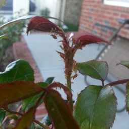 In warm weather, Macrosiphum rosae (L.) walks off buds of hydrid tea roses during a 'critical period' coinciding with the opening of the sepals. This behaviour could not be related to histologically detectable barriers to feeding, nor to changes in the water content of the tissues or in their composition with respect to total soluble carbohydrate, amino nitrogen or phenolic compounds; major changes in tissue chemistry, effected by spraying the bushes with urea, did not affect the time at which the aphids left the buds.