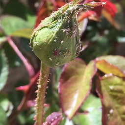 Once a stem has buds developed to the size of a thimble for the hybrid tea type flowers, and adjusted smaller for the smaller blooming roses like Marie Pavie, the rose midge fly ignores the stem. I assume a more mature stem is not as 'tender/succulent' for midge maggots to damage, and either the female does not lay eggs on them or the eggs hatch and the maggots die? off.