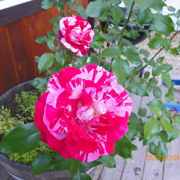 I grow Rock & Roll and Scentimental. Scentimental is always a white rose with red stripes for me, but Rock & Roll starts off in spring and fall as a red rose with white splashes and stripes and fades to the red & pink color as it ages. When the summer heat really sets in, Rock & Roll opens as a red rose with a few pink splashes and stripes. It does always smell wonderful and the red doesn't burn or blue in the sun, but the stripes and splashes just aren't as distinctive.
