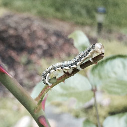 Always remove caterpillars. You can see that he has just eaten a leaf. You could move him to an apple, blackberry, or cherry if you like.