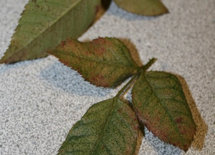 These markings are only on the leaves at the bottom of the shrub. I had clipped the curled leaves before taking this picture, and will watch for any more to develop. Hopefully this is nothing-- I think I'm just antsy since it's my first David Austin!