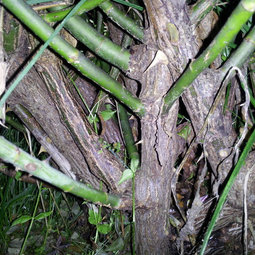 I'll take a closer look tomorrow, but I think the climbing canes are pretty close in thickness to the regular canes. They are green, not red, so maybe I'm misreading them - maybe they are Dr. Huey. They didn't bloom this year, and Dr.H would have bloomed by now, but I'll wait and see if I get any Scentimental blooms during the rest of the year. The plant has been there at least 10 years, maybe more.