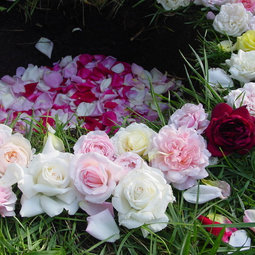 When our beloved cat died we buried him with a spray of blooming Souvenir d'un Ami roses against his chest between his paws.