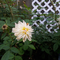 Re shade: back when the Chihuly exhibit was at the Atlanta Botanical Garden, some of us got together to see the roses and his glass. In back of my favourite pond with some very subtle glass colors, Jody and I saw a rose blooming not in the rose garden. So, of course, we had to go see.