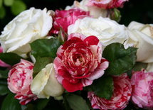 One thing to think about for a rose newbie is whether these roses will get much care - the big cabbage-type roses like most gallicas look pretty ratty if they don't get deadheaded, and that might deter the "budding" rose enthusiast. If you want to put in one rose of that type for the historical effect, make sure it's fragrant to make her pine for it blooming again. My votes in the fragrant historic category for zone 4/5 would be Madame Isaac Periere, Maggie, Jacques Cartier, or Francis Dubreuil/Barcelona. All of them are highly scented for me, laugh at my winters, and rebloom at least some. MIP and FD would be the biggest contrast to a white like Darlow's Enigma, and for me every one of those roses has a toe-curling wonderful scent (and I have a poor rose "nose"). FD might have the toughest time with a full-sun spot, since he appreciates some mid-day shade.