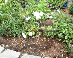 Seil, I keep on trying. I work at a garden center, and the only roses we sell are repeat bloomers.. tons of Knockouts.. but, I LOVE the old one time bloomers.. less trouble, and a gorgeous show once a year, instead of a piddling disease-soaked showing all the rest of the summer. The Austin roses are the worst here in the humid Jersey shore summers. The teas ya gotta keep on spraying. So.. I bought an "America" Climber, Rosa Rugosa "Crimson King", and a Brownell Sub Zero "Curly Pink" (have since heard bad things..(LOL!),