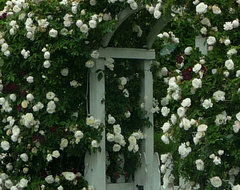 Seil, I keep on trying. I work at a garden center, and the only roses we sell are repeat bloomers.. tons of Knockouts.. but, I LOVE the old one time bloomers.. less trouble, and a gorgeous show once a year, instead of a piddling disease-soaked showing all the rest of the summer. The Austin roses are the worst here in the humid Jersey shore summers. The teas ya gotta keep on spraying. So.. I bought an "America" Climber, Rosa Rugosa "Crimson King", and a Brownell Sub Zero "Curly Pink" (have since heard bad things..(LOL!),