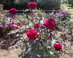 The volunteers have planted an outer bed of OGRs from ARE and ROYAT. The interior beds are older moderns, many appearing to be those from the 1966 installation. I went to Torrance to plant a friend's pot ghetto, but HAD to take her five new rooted cuttings from my wraps to make sure there would still be SOMETHING in pots on her patio! Kim