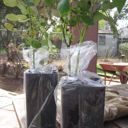 I went to a local nursery that has a broad selection of roses, but hasn't been caring for them lately. They pruned them but REALLY need to water. It's been a bad season for mildew, and BS is back.