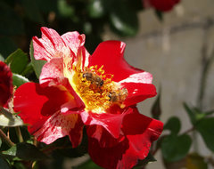 Anyway, you may be correct about the yellow/white bloom too - I just went out and looked at it carefully. The stem it is on goes back to the ground, and where it enters the soil there is a branching of it and 3 other stems, non of which have any blooms at the moment. The base of those stems is about 2 inches away from what looks like the base of the stems with the dark pink roses on them. I will keep an eye on them, and see what color they are when they bloom. I still may try and root the stem with the yellow/white rose on it - if it is a separate plant, it has always been way dominated by the other rose - it only has one or two yellow/white blooms a year. Thanks again for the info - very interesting.