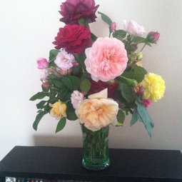My "east side survivors" - roses in the zone 4 pocket of my house that can handle more extreme temperatures - starring Alexander MacKenzie (pardon the deadheads still hanging in)