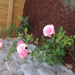 I ended up deciding on an arrangement of curved trellis panels to encompass all the plants, and started trimming (again) before the weather went haywire here. Before our first frost, the rose to the far right had already put out enough new growth I was able to start training it! Since the first attempt was successful, I'll be able to gradually work my way across the arc next year and eventually have the roses eventually back under control (we hope). Will follow with pictures when the weather warms up a bit.
