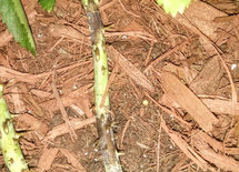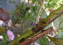 sharon, it is good if you have the heel, but not neccessary. You cannot always get a heel on the cutting. Ivan's cutting is similar to what I use. I would just cut a little closer to the bud eye and scar the bud eye before dipping in rooting hormone. you do not want to use too much of the rooting hormone as it will make the cuttings rot. I use a small dry makeup brush to spread the hormone powder on the scar I have made. Can you see the budeye just above the thorn on Ivan's cutting? I scrape beside it to scar it. Not too deep. You want to see the white. Some people make a slice, or two scrapes, and even mash it. Personal preference. I have tried all four as an experiment and really didn't see much difference in rooting success.