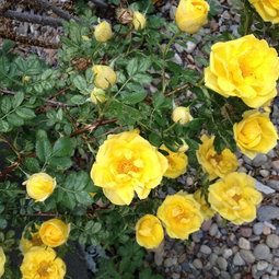 Bellarosa - whether Red Cascade climbs or sprawls depends on how you grow her. If you tie her up to a support, she climbs. If not, she covers ground. What makes it work as a ground cover is that it doesn't just bloom at the end like most climbers (which would make them poor as ground covers). Instead, it puts out a lot of short laterals at regular intervals, so blooms pop up all over the place. As I recall, mine had about 4 or 5 main canes, each of which spread in a different direction with scattered blooms along the length.