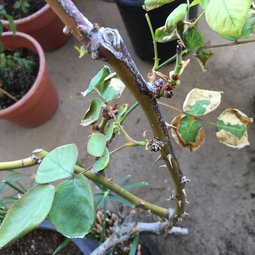 Thus it appears that the Chinese closterovirus possibility (for the Damask rose infection) can be removed if the claim of excessive thorns in the damask rose is accurate. However, when I look at the picture that they (the damask investigators) provide, I do not see the clear indication of excessive thorns that I have seen in some rose rosette virus pictures. I suggest that we wait for the results of the definitive PCR test before concluding whether the middle East is or is not to be added to the known locations of rose rosette virus. I
