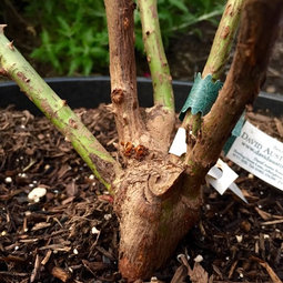 I'm not rereading the whole thread to see if it was posted here, nor do I remember where the information came from, but fairly recently a science-based source indicated that exposure to the sun actually does encourage new growth from old wood. Previously I had suspected this was one of the many false beliefs that gardeners share with each other, but not so. Thus, prune to open the center, pull back the mulch a little bit, and if necessary remove crowded lower leaves. Of course these actions would have no effect on a buried graft, but shoots from low on a thick cane are nearly as good.