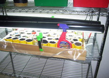 dowlinggramUpdated A shop light with reflectors and T8 daylight bulbs is what you need. One that has chains and a plug. Not one that is to be hard wired and has no plug.