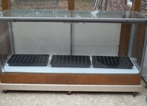 Once the seeds have germinated, begin to expose the flats to real air and sunlight. If the top layer becomes crusty, keep the surface gently stirred. Use a pencil or a bamboo skewer for the job.