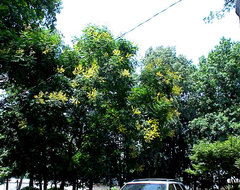My golden raintree stands along (no other rain trees), grew for 14 years before the golden fronds bloomed, but it has been glorious every year since. If anyone wants pods/seeds, since it isn't contaminated by other "green" raintrees, I'd be glad to send. Just let me know.