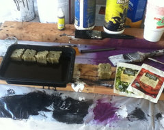 -a roll of black landscape plastic or a bunch of black garbage bags