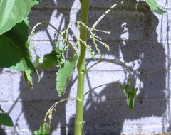 Birds DO ravage flowers. They've eaten half my zinnias (flowers and foliage) and half of the early foliage of some sunflowers. "Sparrow" type little monsters ate these below as I watched. There was no rubble on the ground. They weren't building nests. They're just jerks.