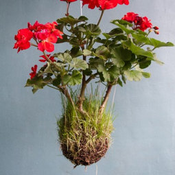Horticultural catalogs carry the clear, green, and brown plastic netting and the Sphagnum moss to contain the root ball for making these if interested.