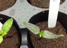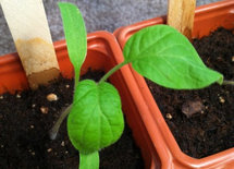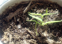 I planted 12 and 5 never came up, 6 did as shown above and eventually withered completely (and still had green stems!) and one looked okay. I cut it off that cell pack (and threw the rest out) and took care or it with my other seeds.